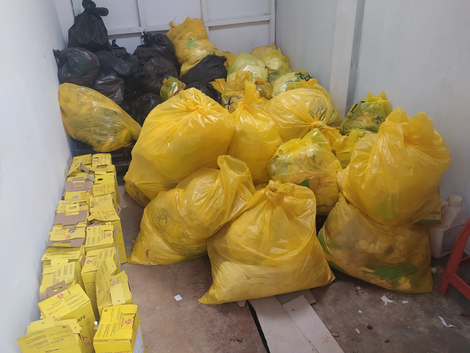 “Biasanya limbah medis di sini simpan dulu 4 hingga 5 bulan sebelum diambil pihak ketiga dengan berat 45 kg, dan itu sesuai dengan MoU. Tiap satu minggu kita lakukan penyemprotan,” kata Yanto.