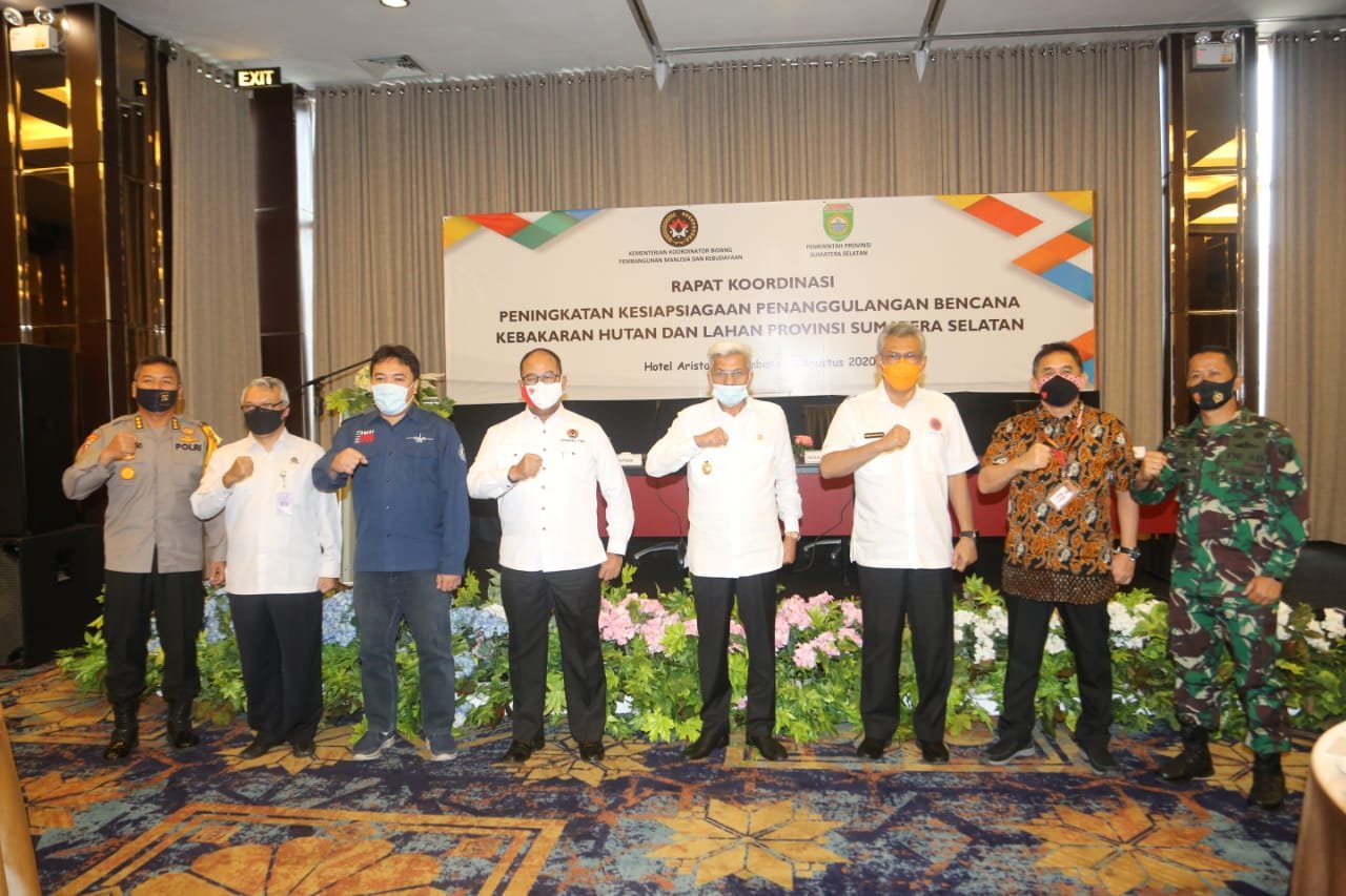 Hadir juga dalam kesempatan tersebut Deputi Penanganan Kedaruratan BNPB Dodi Ruswandi, Kepala BPBD Sumsel Iriansyah, Kepala Dinas Perkebunan Sumsel Fahrurrozi, serta Kasat Pol PP Sumsel Aris Saputra.