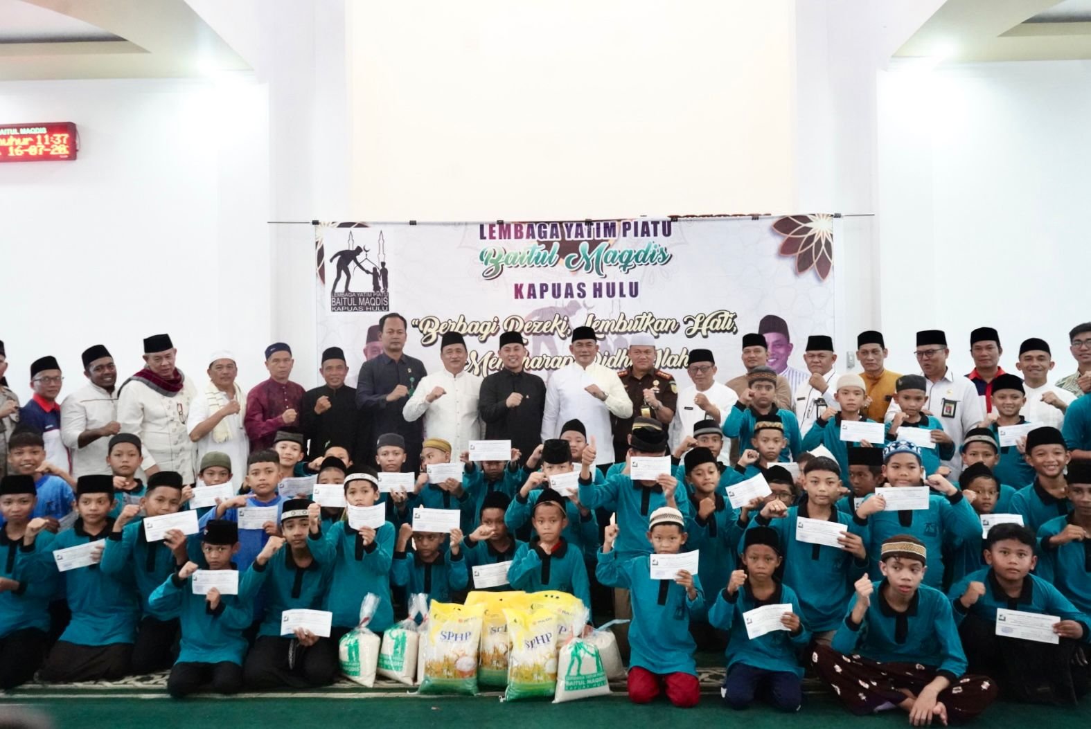 “Pastinya banyak sekali keberkahan yang kita dapatkan, apabila kita memuliakan anak-anak yatim piatu. Maka marilah kita semua terus memuliakan anak yatim piatu di Kapuas Hulu,” ucapnya.