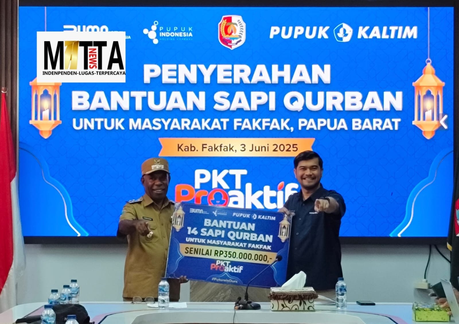 MATTANEWS.CO, FAKFAK – Pemerintah Kabupaten Fakfak memberi apresiasi kepada Pupuk Kalimantan Timur (Pupuk Kaltim) dalam menyerahkan bantuan sapi kurban untuk masyarakat Fakfak.