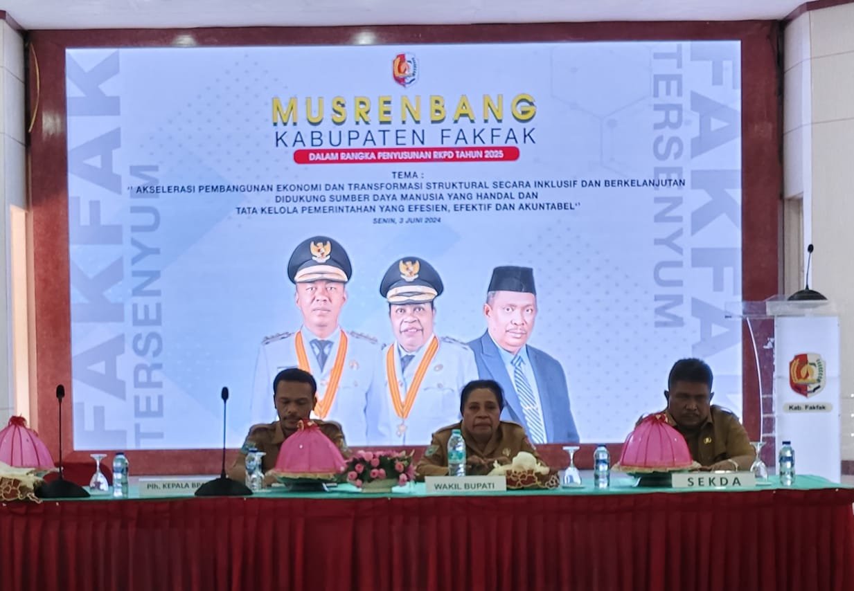 MATTANEWS. CO, FAKFAK – Wakil Bupati Fakfak Yohana Dina Hindom, SE, MM, membuka kegiatan Musrenbang tingkat Kabupaten Fakfak dalam rangka penyusunan rencana kerja pemerintah daerah (RKPD) tahun 2025.
