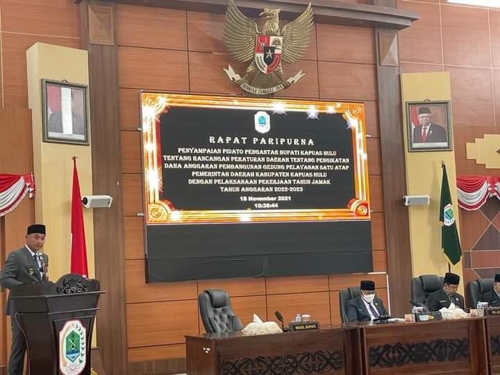 MATTANEWS.CO, KAPUAS HULU – Rancangan Peraturan Daerah (Raperda) tentang pengikatan dana anggaran pembangunan gedung pelayanan satu atap Pemda Kapuas Hulu dengan pelaksanaan pekerjaan tahun anggaran 2022-2023, sudah diusulkan ke DPRD Kabupaten Kapuas Hulu, nota pengantar Raperda tersebut diserahkan Wakil Bupati Kapuas Hulu, Wahyudi Hidayat, S.T kepada Ketua DPRD Kabupaten Kapuas Hulu, dalam kegiatan Sidang Paripurna. Kamis (18/11/2021)
