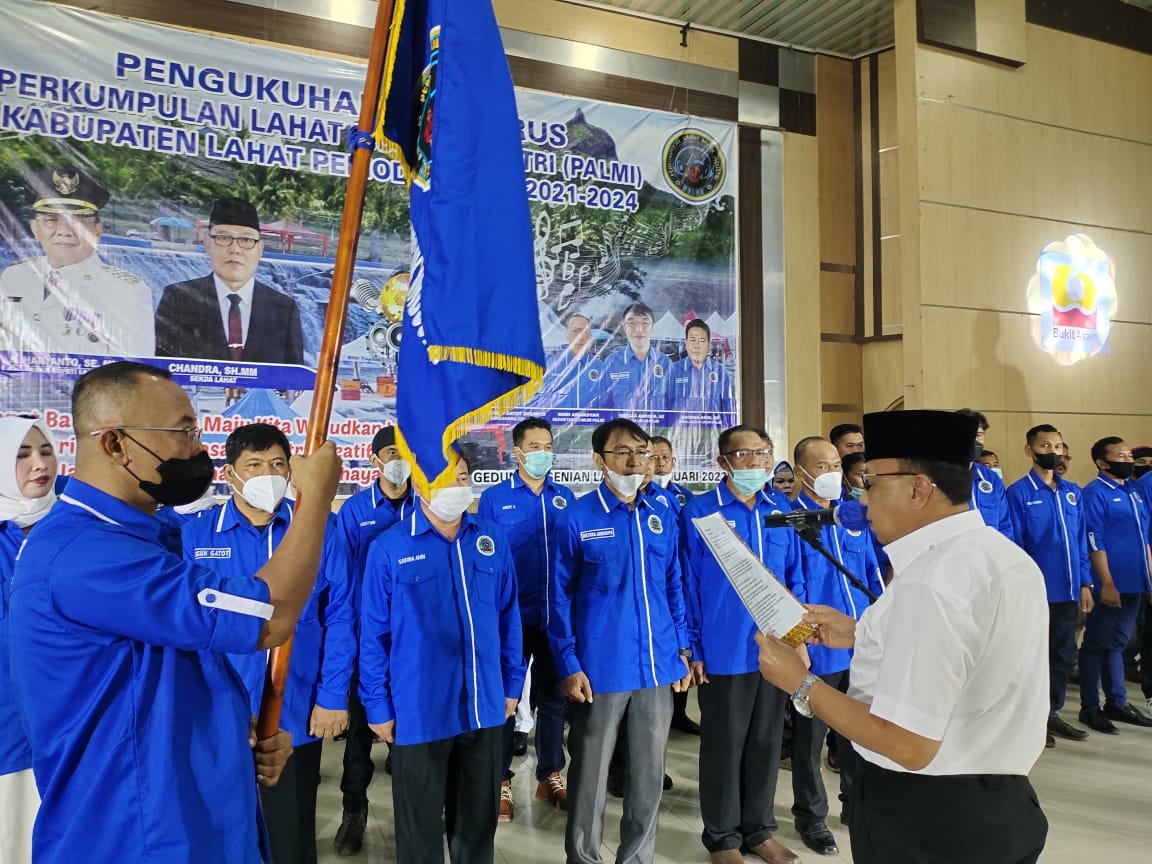 MATTANEWS.CO, LAHAT – Bertempat di Gedung Kesenian Kabupaten Lahat, Bupati Lahat Cik Ujang SH dalam hal ini di wakili oleh wakil Bupati Lahat H Hariyanto SE MM hadiri secara langsung pengukuhan Pengurus Perkumpulan Lahat Musik Industri (PALMI) Kabupaten Lahat Periode tahun 2021-2024,Rabu(19/01/2022).