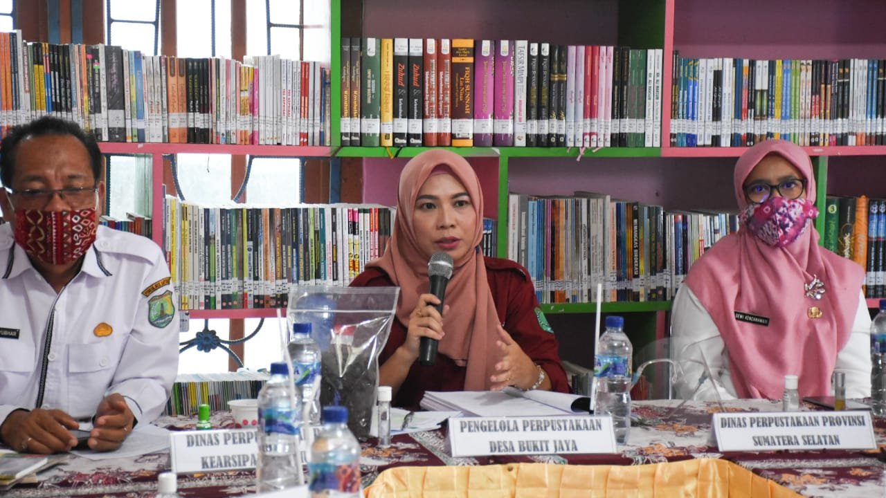 Untuk itu, meskipun masih tengah menghadapi pandemi COVID-19, Pengelola Perpustakaan Desa Bukit Jaya Kecamatan Sungai Lilin Santi Astuti didampingi Kepala DPK Muba Yohanes Yubhar MM dengan semangat memapar dan menjawab pertanyaan pertanyaan dewan juri melalui Video Conference, Rabu (30/9/2020) di Ruang Perpustakaan Desa Bukit Jaya Kecamatan Sungai Lilin.
