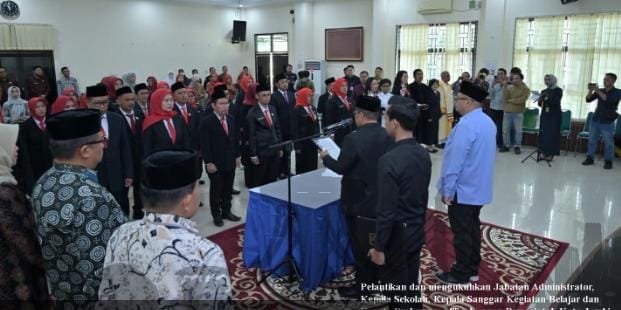 MATTANEWS.CO, JAMBI — Maulana selaku Wali Kota Jambi melantik dan mengukuhkan sejumlah pejabat di lingkungan Pemerintah Kota Jambi, Kamis (12/3/2026). Pelantikan tersebut meliputi jabatan administrator, kepala sekolah, kepala sanggar kegiatan belajar, serta kepala puskesmas.