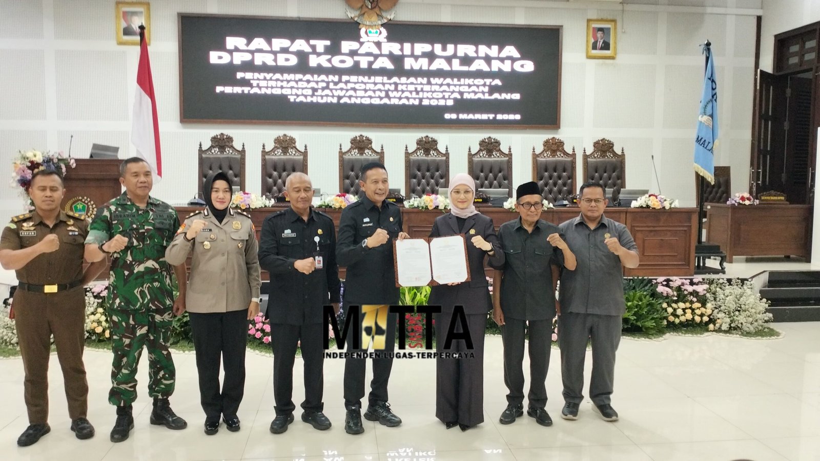 MATTANEWS.CO, MALANG – Rapat Paripurna DPRD Kota Malang tentang Penyampaian Penjelasan Terhadap Laporan Keterangan Pertanggung Jawaban (LKPJ) Wali Kota Malang Tahun Anggaran 2025 yang berlangsung di Gedung Sidang Paripurna, Senin (9/3/2026).