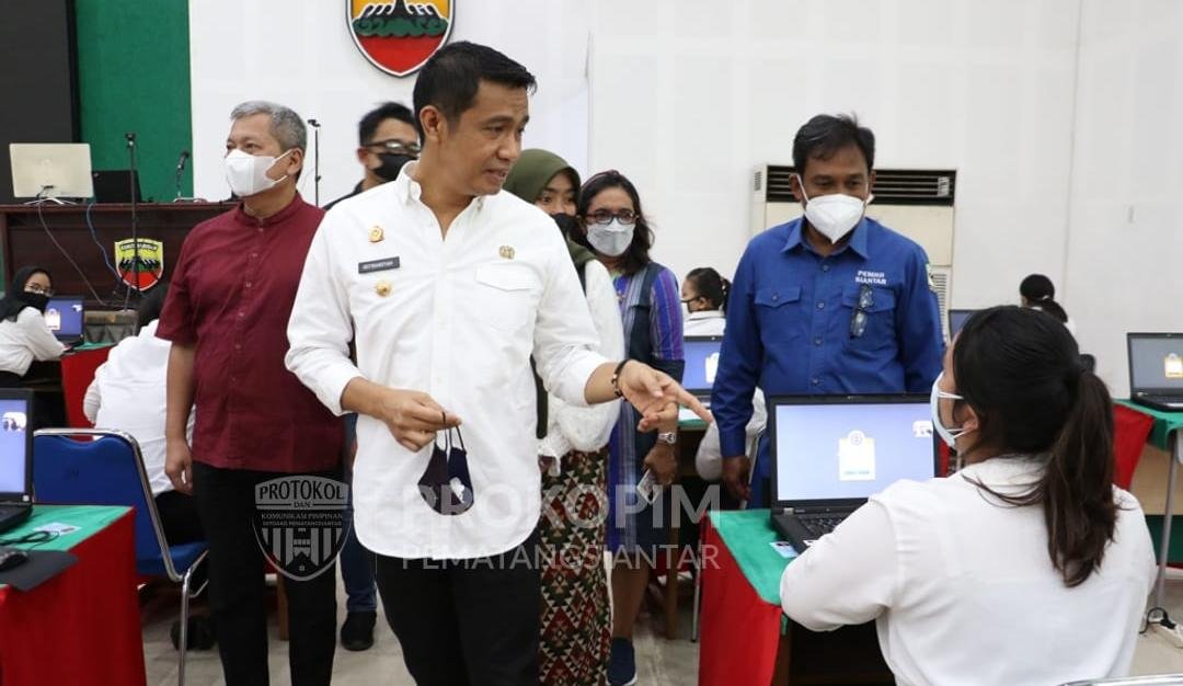 MATTANEWS.CO, PEMATANGSIANTAR – Wali Kota Pematangsiantar Dr. H. Hefriansyah SE.MM meninjau peserta Calon Pegawai Negeri Sipil (CPNS) Pemerintah Kota (Pemkot) Pematangsiantar formasi Tahun 2021, Gedung Balai Prajurit MAKODAM I Bukit Barisan, Jalan Gatot Subroto Medan, Jumat (15/10/2021).
