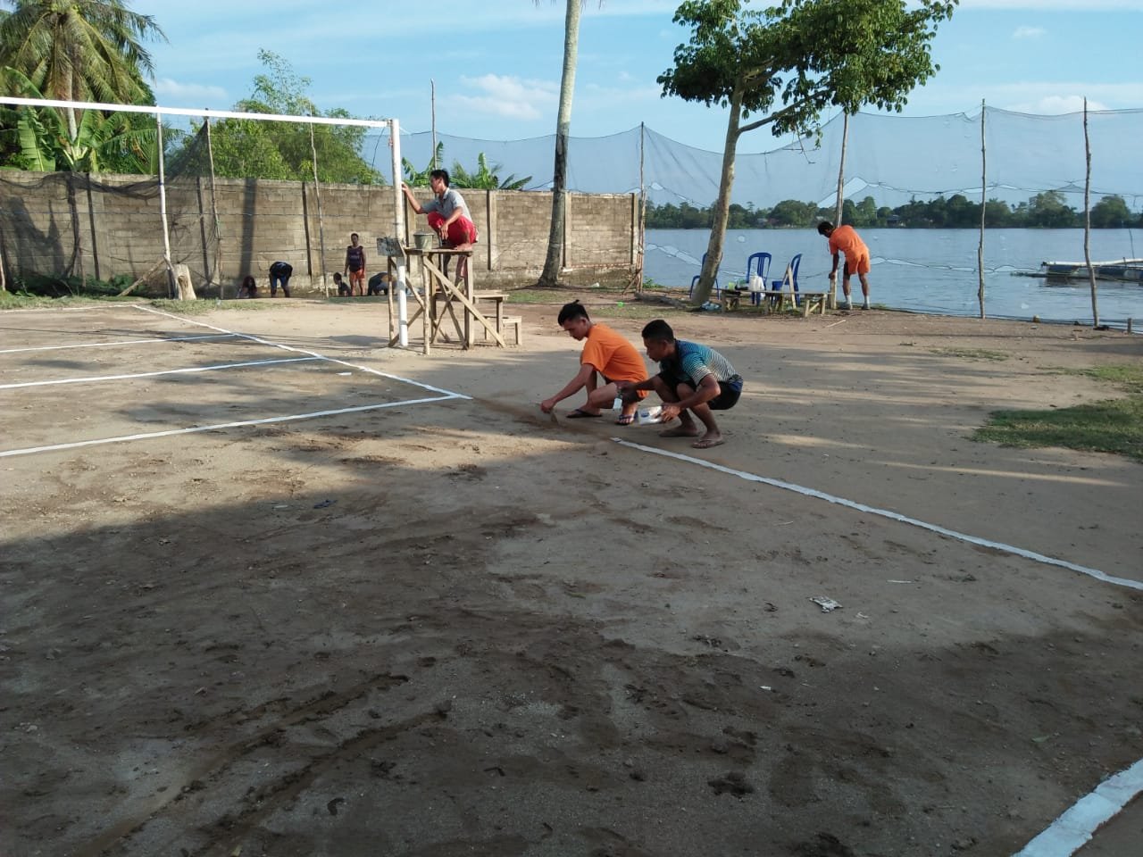 PALEMBANG, Mattanews.co – Sejumlah warga Kampung Pulokerto, Kecamatan Gandus Palembang mengecat pembuatan garis lapangan voli di dekat Poskotis TNI Manunggal Membangun Desa (TMMD) 104 Kodim 0418/Palembang untuk pelaksaan lomba bola volly.