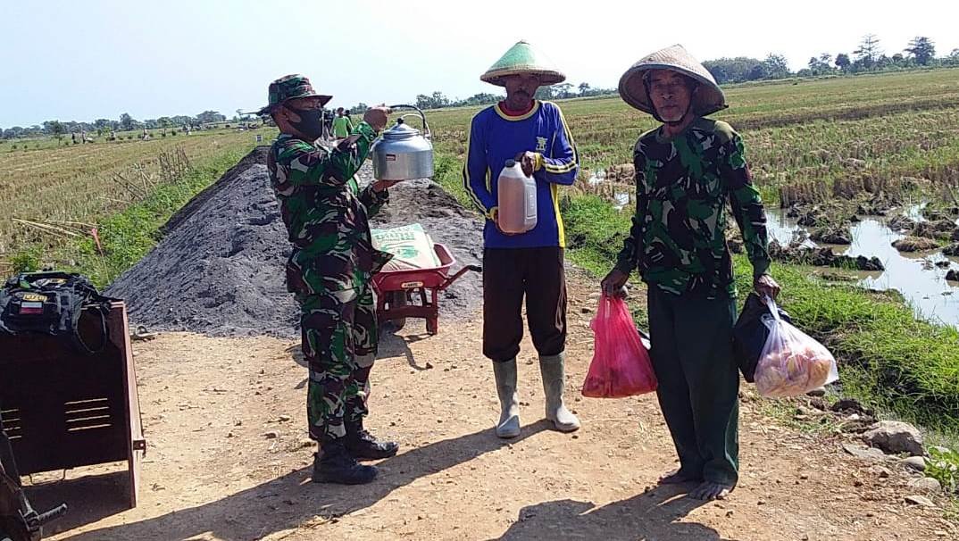 Salah satu warga Desa Sendang Kulon Kecamatan Kangkung, Sutopo mengungkapkan rasa kegembiraannya. “Pak TNI Teng mriki seng dangu geh, aatu tahun mboten nopo soalnya ramai desane kulo,” ujarnya Sutopo). (Pendim 0715/Kendal)