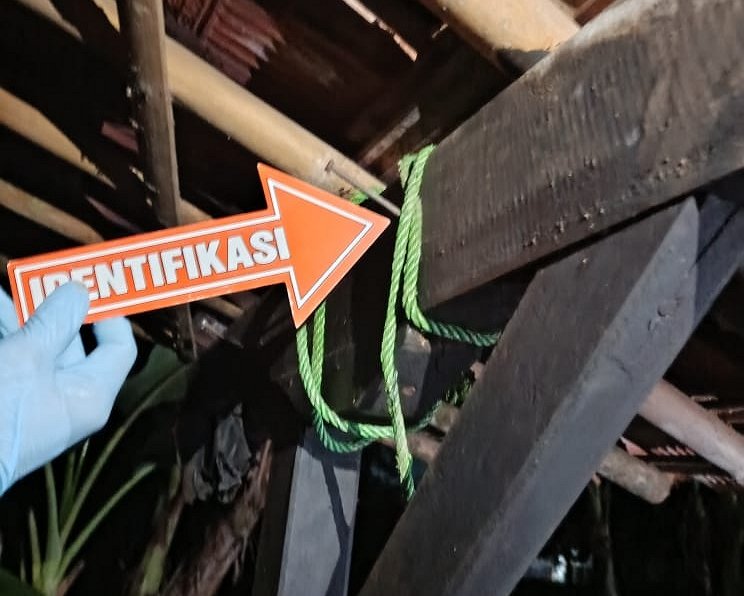 “Rumah kontrakannya kebetulan di depan rumah korban, dan saat itu saksi melihat sosok Korban menggantung di dekat tiang rumahnya,” tuturnya.