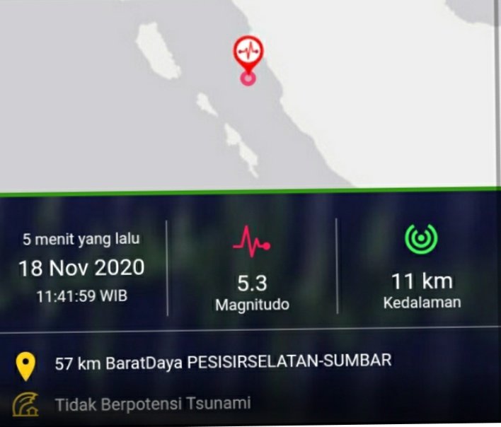 TANAH DATAR, Mattanews.co – Sudah dua hari ini gempa mengguncang Sumatera Barat (Sumbar). Yaitu pada hari Selasa (16/11/2020) terjadi gempa berskala 6,5 Sekala Rikter(SR) dan Rabu (17/11/2020), gempa berskala 5,3 SR dengan kedalaman 13 kilo meter(KM) dan epicentrumnya di lepas pantai Painan, Pesisir Selatan Sumbar