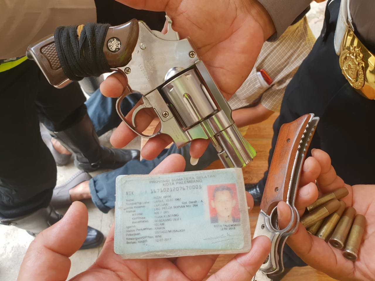 “Tersangka ini saat dilakukan pemeriksaan gugup. Ketika diberikan pertanyaan-pertanyaan, selalu berkilah. Curiga, anggota pun menggeledah sepeda motor nopol BG 4911 RC yang dikemudikannya. Dari tubuhnya ditemukan sepucuk senpi berikut enam butir amunisi, lima jenis softgun dan sebutir organik. Bukan itu saja, sajamnya jenis pisau lipat, juga ada di tas selempangnya. Kini tersangka sudah kami serahkan ke reskrim guna pengembangan lebih lanjut,” ungkap Kasat Lantas Polresta Palembang, Kompol Arief Harsono saat dikonfirmasi di ruang kerjanya.