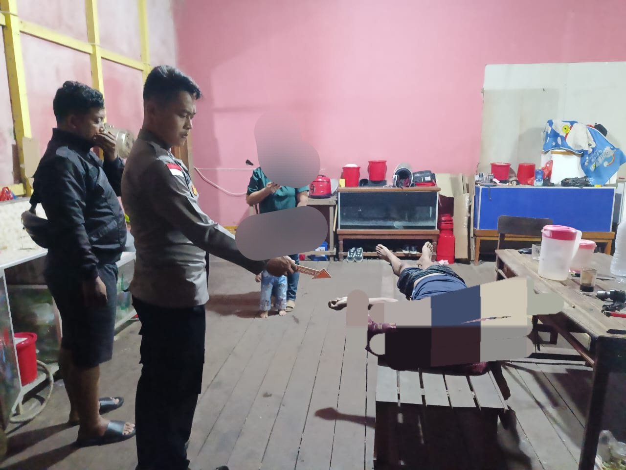 Lanjut kata Kapolsek, setelah sekitar satu jam, korban belum juga turun dari kamar. RE kemudian naik ke lantai dua untuk memeriksa keadaan suaminya. Dalam kondisi penerangan kamar yang remang-remang, RE sempat mengira korban masih berdiri.