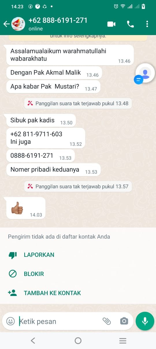Tenaga Ahli Bidang Komunikasi dan Media Gubernur Sulbar, Munadir Mubarak memastikan itu adalah penipu. Karena Pj Gubernur Sulbar tidak menggunakan nomor itu dan tak pernah meminta apapun.