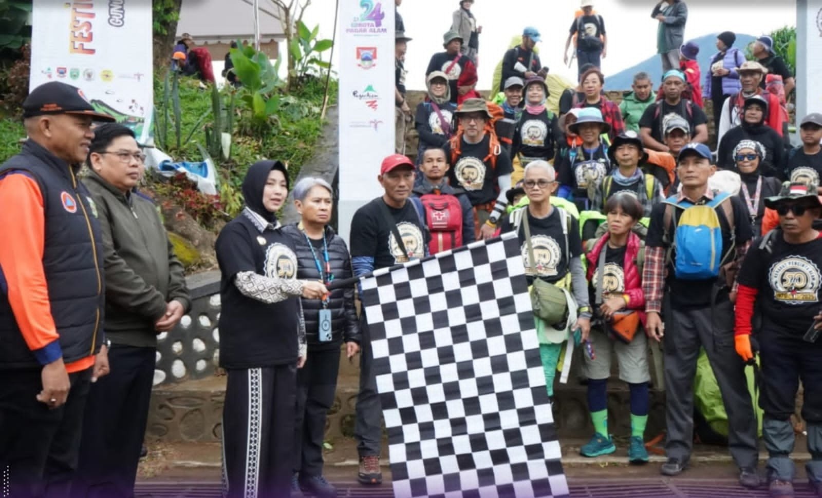 MATTANEWS.CO PAGAR ALAM -Wakil Wali Kota Pagar Alam Bertha, lepas 70 Kerabat Pecinta Alam (KPA) pendaki gunung dempo, dalam rangka memeriahkan Festival Dempo HUT Kota Pagar Alam ke 24 tahun, di lapangan lending tangga 2001 Gunung Gare, Kamis (19/06/2025).