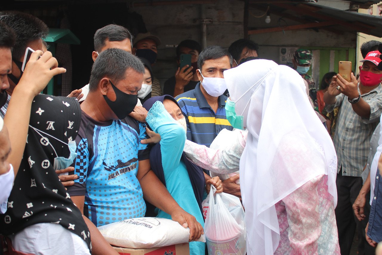 Kedatangan Fitri yang disambut haru tangis keluarga korban kebakaran, membuat suasana haru di lokasi eks kebakaran.