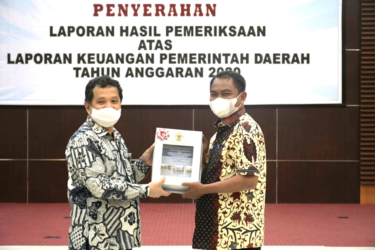 Penerima LHP Atas LKPD Kabupaten Sergai tahun 2020 di terima Langsung Bupati Sergai H.Darma Wijaya yang diserahkan oleh Kepala BPK RI Perwakilan Sumut Eydu Oktain Panjaitan S.E., M.M., Ak., CA., CSFA di kantor BPK RI Perwakilan Sumut, Medan, Kamis (15/4/2021) kemarin