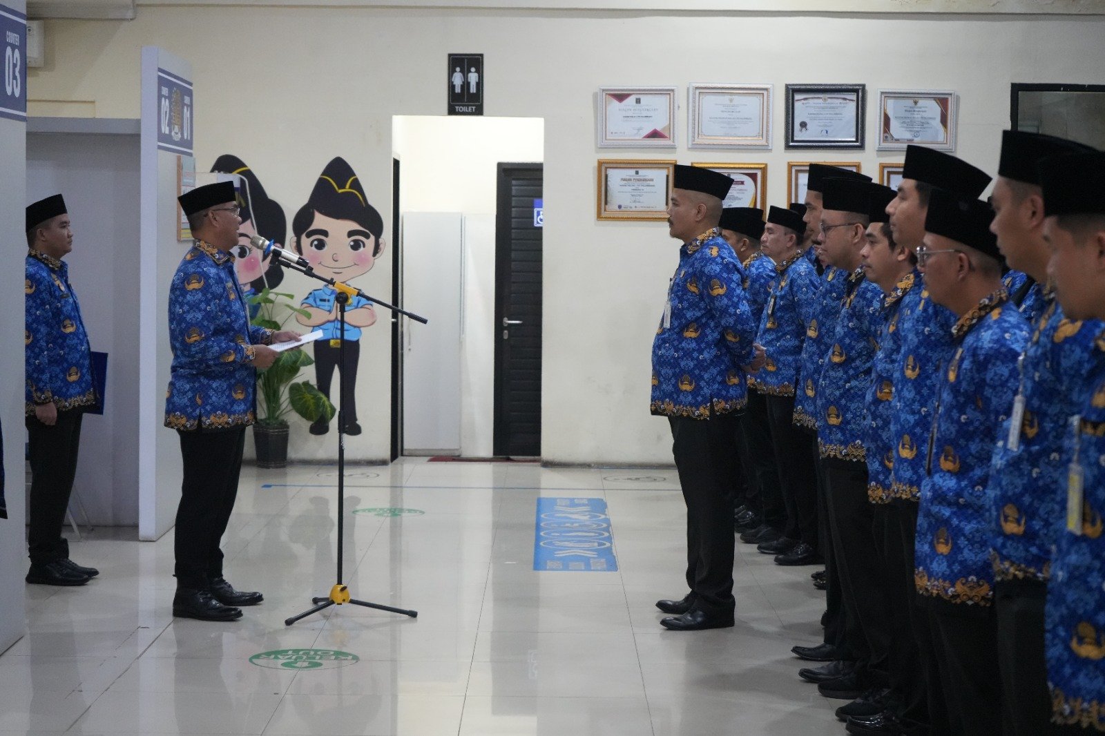 MATTANEWS.CO, PALEMBANG – Kepala Kantor Wilayah Kementerian Hukum dan HAM Sumatera Selatan, Dr. Ilham Djaya memimpin apel dalam rangka peringatan HUT Korpri, yang bertempat di Kantor Imigrasi Kelas I TPI Palembang.