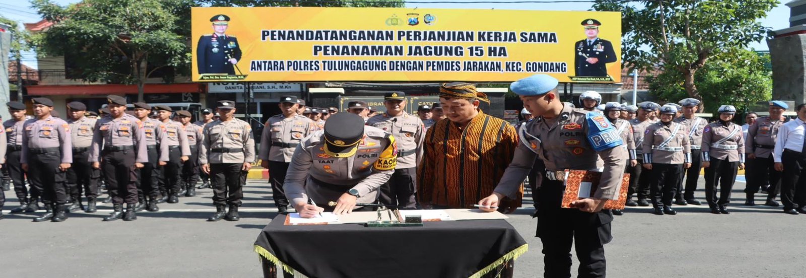 MATTANEWS.CO,TULUNGAGUNG-Kepolisian Resor (Polres) Tulungagung Polda Jawa Timur dalam rangka mewujudkan ketahanan pangan melakukan Memorandum of Understanding (MoU) bersama Pemerintah Desa (Pemdes) Jarakan, Kecamatan Gondang dalam bentuk penanaman jagung di lahan seluas 15 hektar.