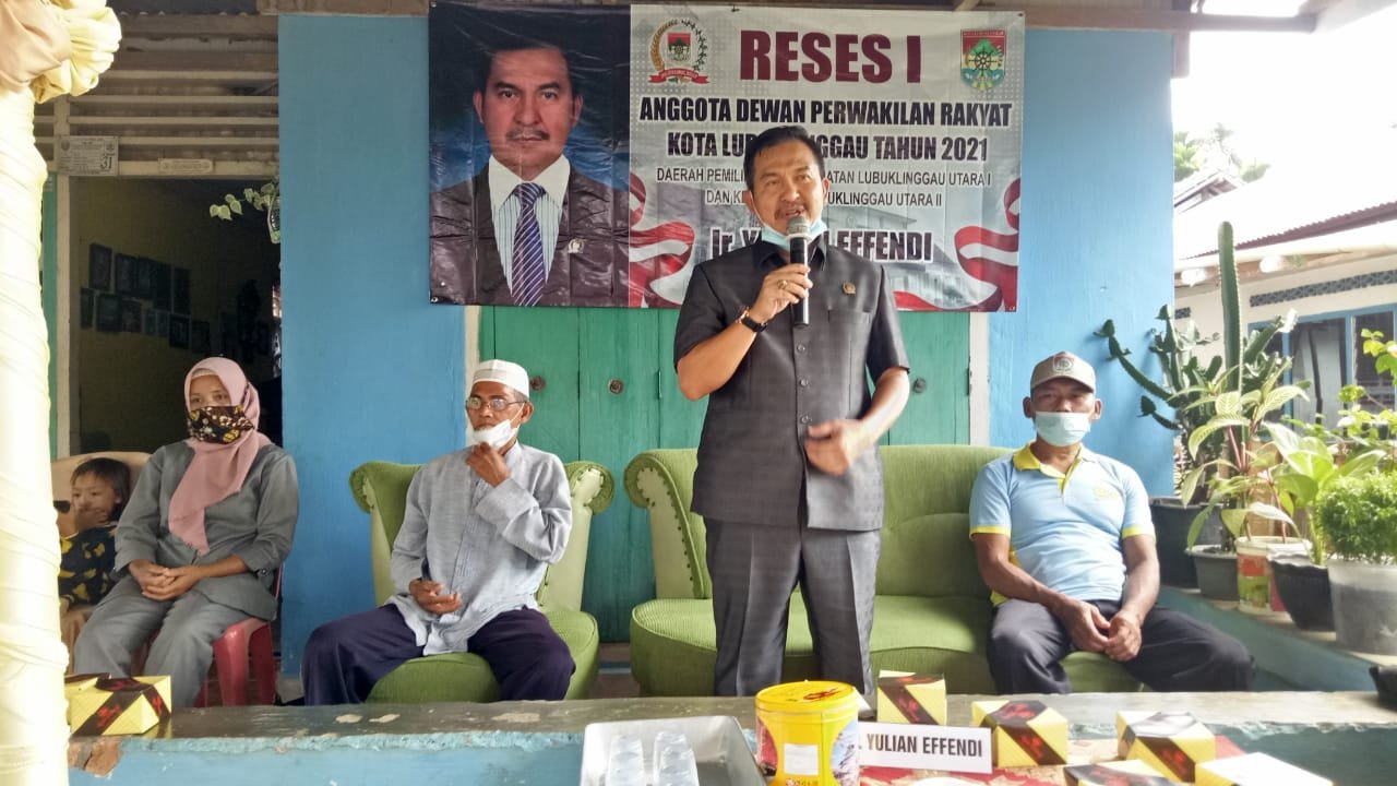 MATTANEWS.CO, LUBUKLINGGAU – Anggota Dewan Perwakilan Rakyat Daerah (DPRD) Kota Lubuklinggau, Ir Yulian Effendi melakukan reses I tahun 2021 di wilayah Daerah Pemilihan (Dapil) II Kecamatan Lubuklinggau Utara I dan II, Sabtu (13/03/2021). Yulian merupakan Ketua Fraksi Partai Golkar tersebut menemui warga kecamatan Lubuklinggau Utara I di Kelurahan Sumber Agung. Turut hadir lurah kelurahan sumber agung, tokoh masyarakat, ibu-ibu pengajian, kader Golkar, tim sukses perwakilan rt dari kelurahan Sumber Agung.